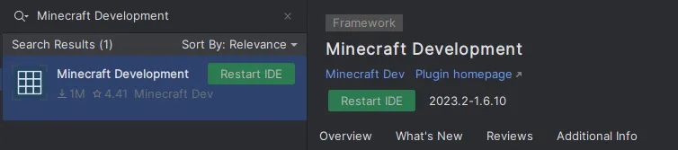 Section titled “Installing the Minecraft Development plugin”